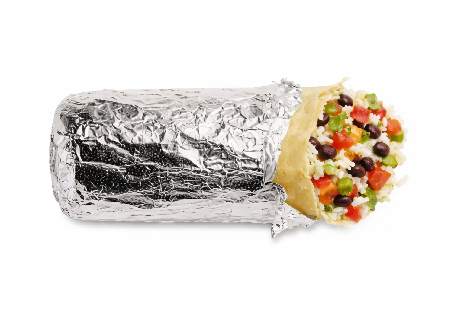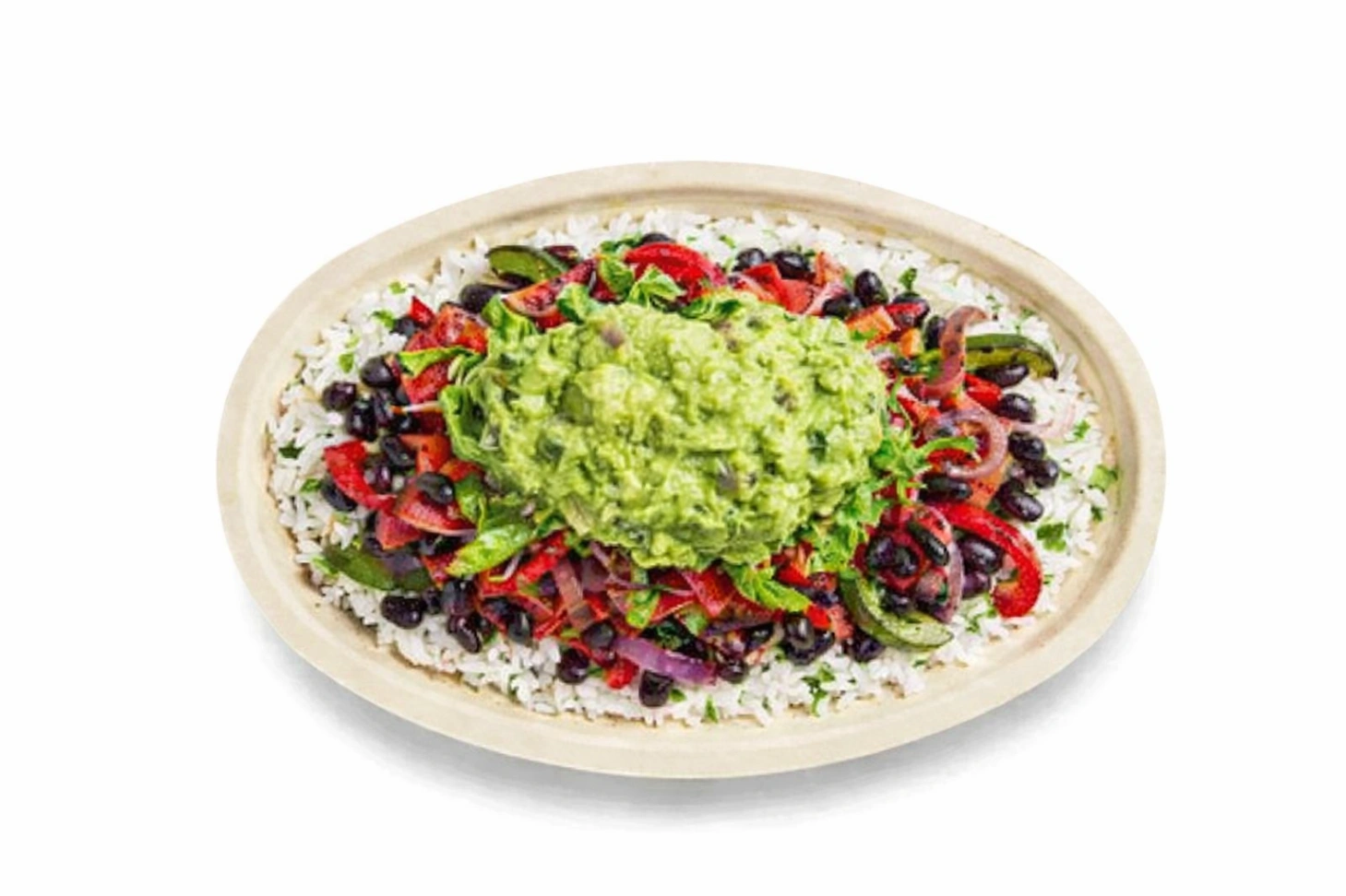 Sofritas wrapped in a warm flour tortilla with white rice, pinto or black beans, tomato salsa, roasted corn salsa, romaine lettuce, and fresh guacamole. (No sour cream or cheese)