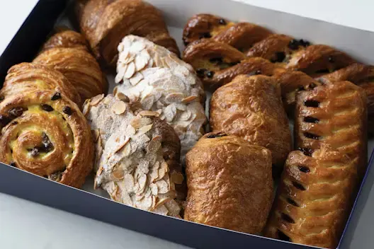 (Serves 12) A selection of our favorite pastries including Croissant, Pain au Chocolat, Pain aux Raisins, Almond Croissant, Feuillete au Chocolat, and Blueberry Cream Cheese Pastry.