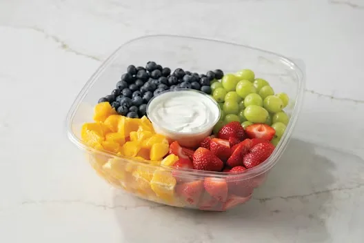 (Serves 12) Orange, strawberries, green grapes and blueberries. Served with a side of soft cream for dipping.