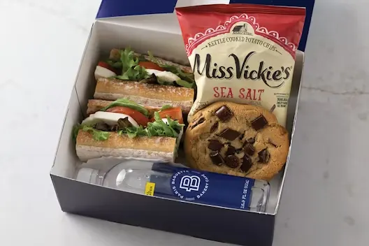 Each individual box includes your choice of premium sandwich, bag of chips, choice of fruit bite or cookie, and choice of drink.