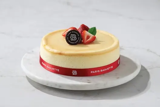 (Serves 10) Rich New York-style cheesecake on a buttery graham cracker crust topped with strawberries.