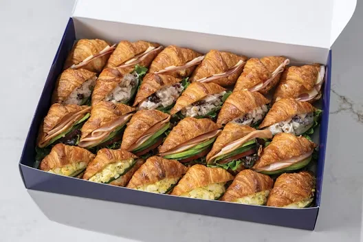 (Serves 12) An assortment of classic lunch sandwiches on mini croissants! The selection includes Mini Ham & Cheese Croissant, Mini Turkey & Avocado Croissant, Mini Chicken Salad Croissant, and Mini Egg Salad Croissant.
