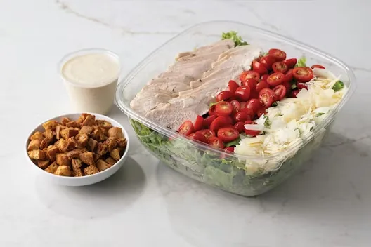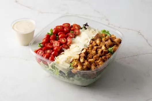 (Serves 12) Grilled chicken, grape tomatoes, shaved parmesan cheese, and house made croutons on a bed of lettuce and mixed greens with caesar dressing.