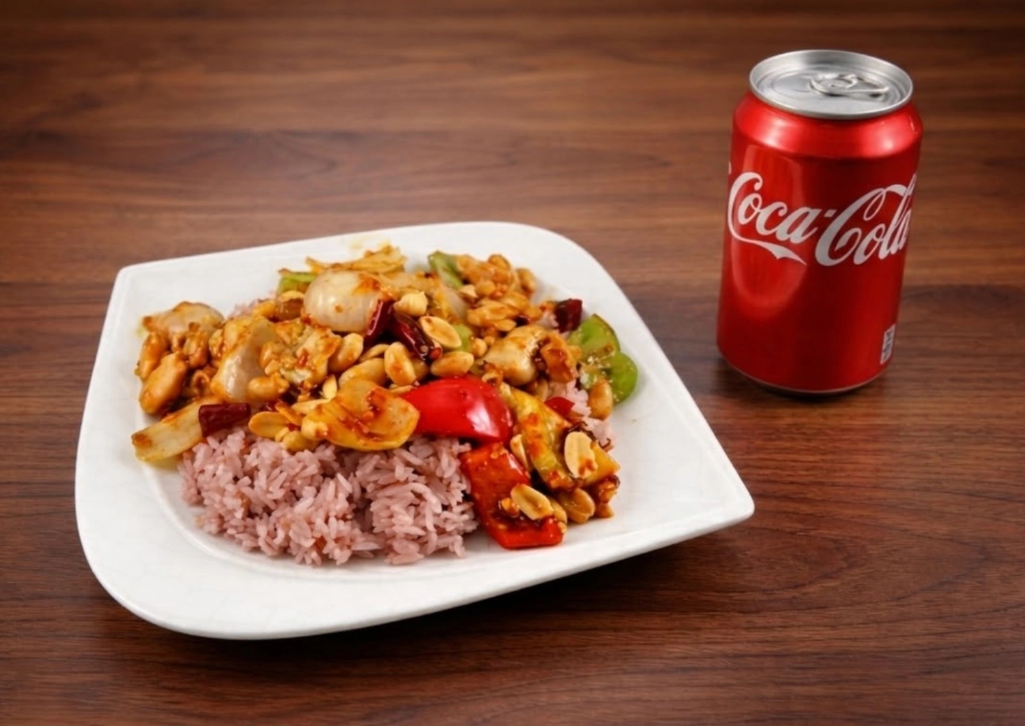 Sweet bell peppers, onions, peanuts & chili peppers served with rice