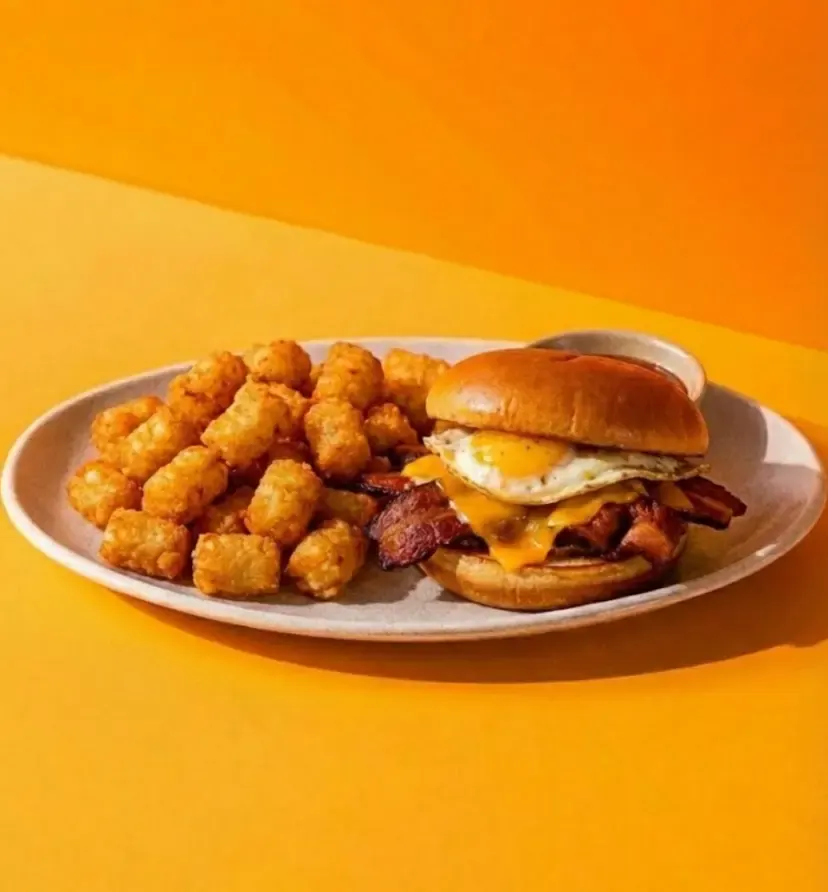 Individually Boxed Combo featuring a Bacon Sandwich with a side of Tater Tots or Truffle Lemon Potatoes and Spicy Ketchup